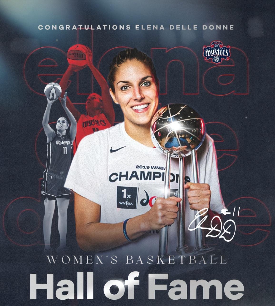 埃琳娜-德勒-多恩同样是两届WNBA常规赛MVP、七届全明星。这位锋线球员是2013年选秀大会榜眼,生涯共10个赛季,先后效力芝加哥天空和华盛顿神秘人,并在2019年随神秘人夺得总冠军。